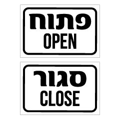 שלט - דו צדדי - פתוח סגור - עברית אנגלית
