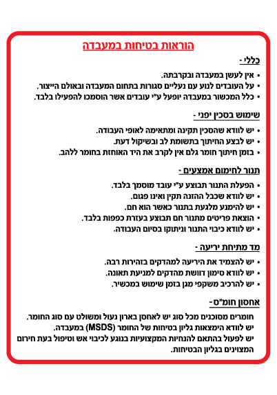 שלט - תמצית הוראות בטיחות - מעבדות - דגם B