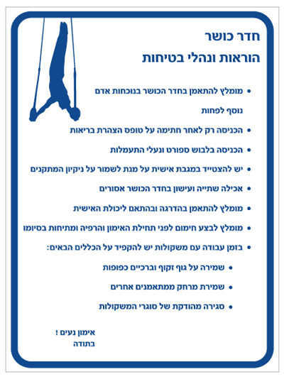 שלט - הוראות ונהלי בטיחות לחדרי כושר