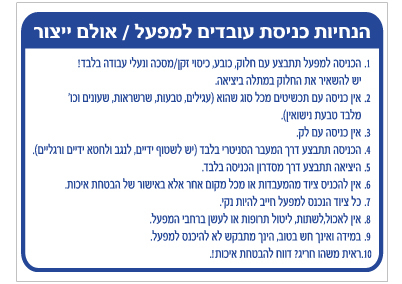 שלט - הנחיות כניסת עובדים למפעל / אולם ייצור