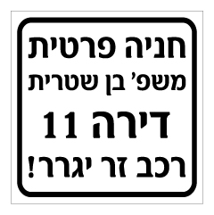 שלט - חניה פרטית רכב זר יגרר כולל של משפחה ומספר דירה