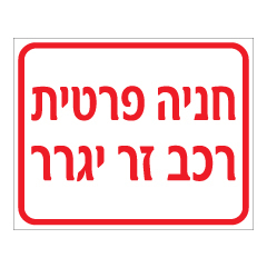 שלט - חניה פרטית - מספר חניה - לשפת המדרכה