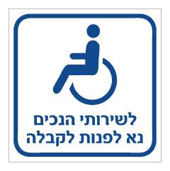 שלט - לשירותי הנכים נא לפנות לקבלה