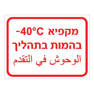 שלט - מקפיא בהמות בתהליך - כולל טמפרטורה - עברית וערבית
